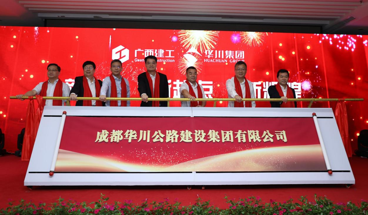 蜀道集團、河北交投、成都市交通局、成都市青羊區(qū)政府、國開行四川省分行、平安銀行成都分行、四川省交通運輸廳等相關部門負責人,廣西建工集團公司部門相關負責人,華川集團領導班子成員、總部職能部門、分子公司負責人參加了儀式。