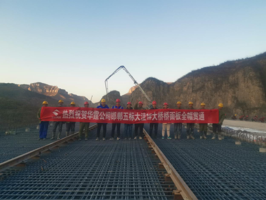 隨著年度通車目標的日益臨近,華霆公司邯鄲五標的生產(chǎn)進度也快馬加鞭地有序推進。12月4日,華霆公司邯鄲五標又一次迎來了關鍵性工程節(jié)點,大洼1#大橋橋面板順利實現(xiàn)全幅貫通。