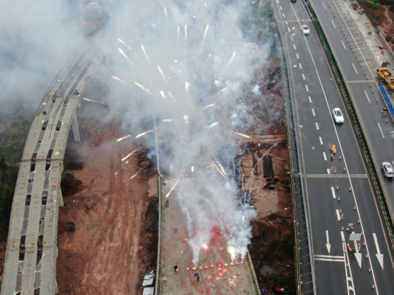 2019年4月8日完成新店樞紐互通施工區(qū)域的土地和房屋征拆協(xié)議簽訂;6月5日成功實(shí)現(xiàn)巴南廣高速封道施工,4座下穿現(xiàn)澆橋梁拉開(kāi)施工大幕8月6日,新店互通樞紐主線橋首片箱梁架設(shè)成功11月7日,新店互通樞紐主線橋最后一片箱梁架設(shè)成功;11月14日,主線路基完成交驗(yàn);11月18日,最后一聯(lián)現(xiàn)澆箱梁順利完成澆筑;今日,順利完成新店樞紐互通最后一片梁板架設(shè)任務(wù)。一個(gè)個(gè)難關(guān)被攻克,一個(gè)個(gè)捷報(bào)傳來(lái),全體參戰(zhàn)人員無(wú)不歡呼鼓舞。