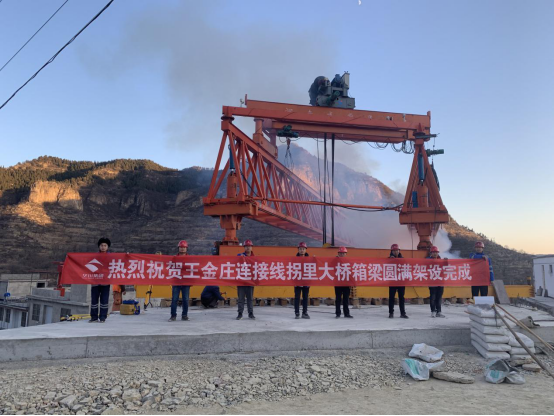 12月4日,伴隨著鞭炮聲與禮花聲,拐里大橋的最后一片40米箱梁宣告圓滿架設(shè)完成。